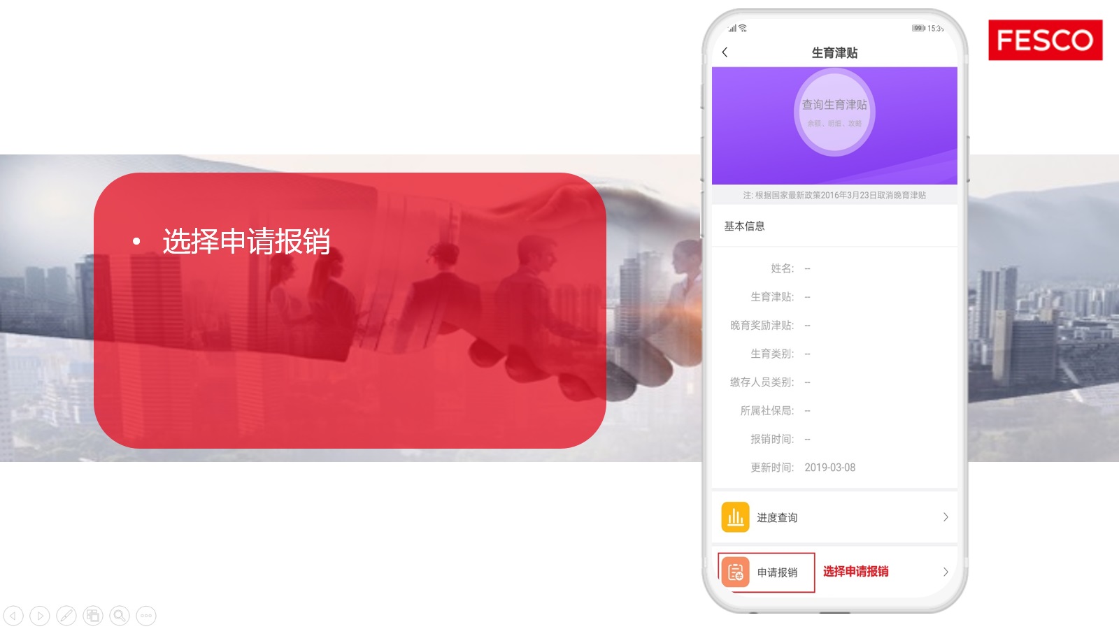 隨著“互聯(lián)網(wǎng)+服務”的深入發(fā)展, FESCO從客戶實際需求出發(fā),將人力資源服務與互聯(lián)網(wǎng)技術完美結合,現(xiàn)在,您可以通過FESCO APP, 實現(xiàn)生育津貼在線審核業(yè)務的辦理。